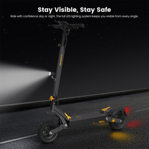 Ride confidently with a full LED lighting system, including a powerful headlight, taillight, brake light, and turn signals. Whether you're navigating low-light conditions or signaling turns, the L1 keeps you clearly visible from all angles.