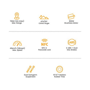 10-inch tubeless vacuum tires provide excellent grip and puncture resistance on pavement, gravel, and light off-road surfaces. Combined with front and rear mechanical disc brakes enhanced by E-ABS, you’ll enjoy smooth, responsive braking—even in wet or uneven conditions. No matter the terrain, the L1 keeps you in control.