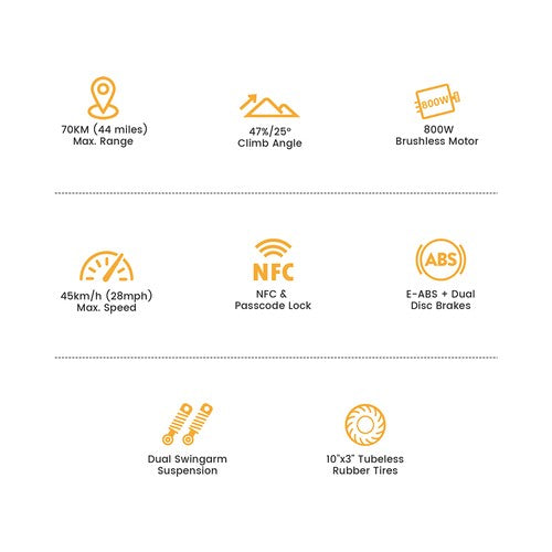 The Ausom L1 e-scooter features a robust 800W motor that delivers rapid acceleration and a top speed of 45 km/h (28 mph). Whether you're commuting in the city or venturing off-road, it handles with ease, even on 25° slopes, so you can climb hills or pass traffic without hesitation.