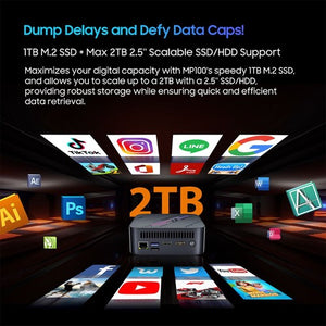 Blackview MP100 comes with 16GB DDR4 RAM and 512GB SSD. Its exceptional multitasking ability makes it a flexible solution for anything from gaming office tasks to and video editing, providing robust storage while ensuring quick and efficient data retrieval.