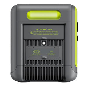 | Specification | Battery Type: LiFePO4 battery Capacity: 2048Wh/640000mA Operating Temperature: 0-40 celsius / 32-104 Fahrenheit Storage Temperature: -10-40 celsius / -4-104 Fahrenheit Humidity: 5%-95% Cooling Strategy: Fan x 7 LED Lighting: Power 1W, Warm tone AC Output: Rated Power 2400W, Pure sine wave, 3-port output, Surge Power 4600W Rated Frequency: 50Hz/60Hz Output Voltage: EU 220-240V AC Inverter Efficiency: η=90% USB-A Output: QC3.0 x 2 (5V3A/9V2A/12V1.5A) Type-C Output: PD 20W x 3 100W x 1 (5V3A 9V3A 12V3A 15V3A 20V5A) DC Output XT60: 12V/25A x 1 DC5521: 12V3A socket x 2 Cigar Lighter: 12V10A socket x 1 Input AC Super Charge: 1100W, EU(AC 220-240V/50Hz,10A),US/JP(AC 100-120V 50Hz/60Hz,10A) Solar Charging: 12V-48V/15A MAX500W Car Charging: 12V/8A, 24V/10A |