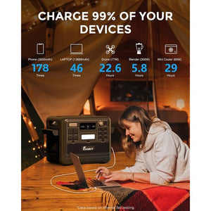 FOSSiBOT portable power station adopts the latest bidirectional inverter technology and the perfect combination of intelligent input power adjustment knobs. The input power reaches 1100W and can realize 0-80% charge in 80 minutes, fully charged in 1.78 hours.