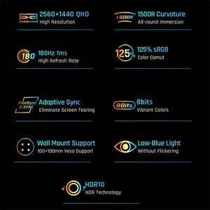 32-lnch Mega Screen, 180Hz High Refresh, 1500R Immersive Gaming, 1ms (MPRT) Fast Response