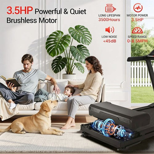 The treadmill adopts powerful and durable brushless motor technology, with a maximum power of 3.5HP and a top speed of 14 km/h. It supports a maximum user weight of 180kg, accommodating users of different sizes. With an operational noise level below 45 decibels, its quiet operation won't disturb you or others, whether at home or in an office setting, allowing you to focus on your training without interference.