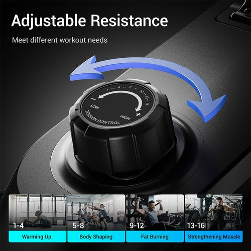 The rowing machine is equipped with a magnetic resistance system that ensures smooth and quiet operation. With 16 adjustable levels, users can easily adjust the intensity to their fitness goals.
