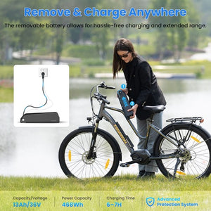 Touroll MA2 Electric Bike, 250W Mid-Drive Motor, 36V 13Ah